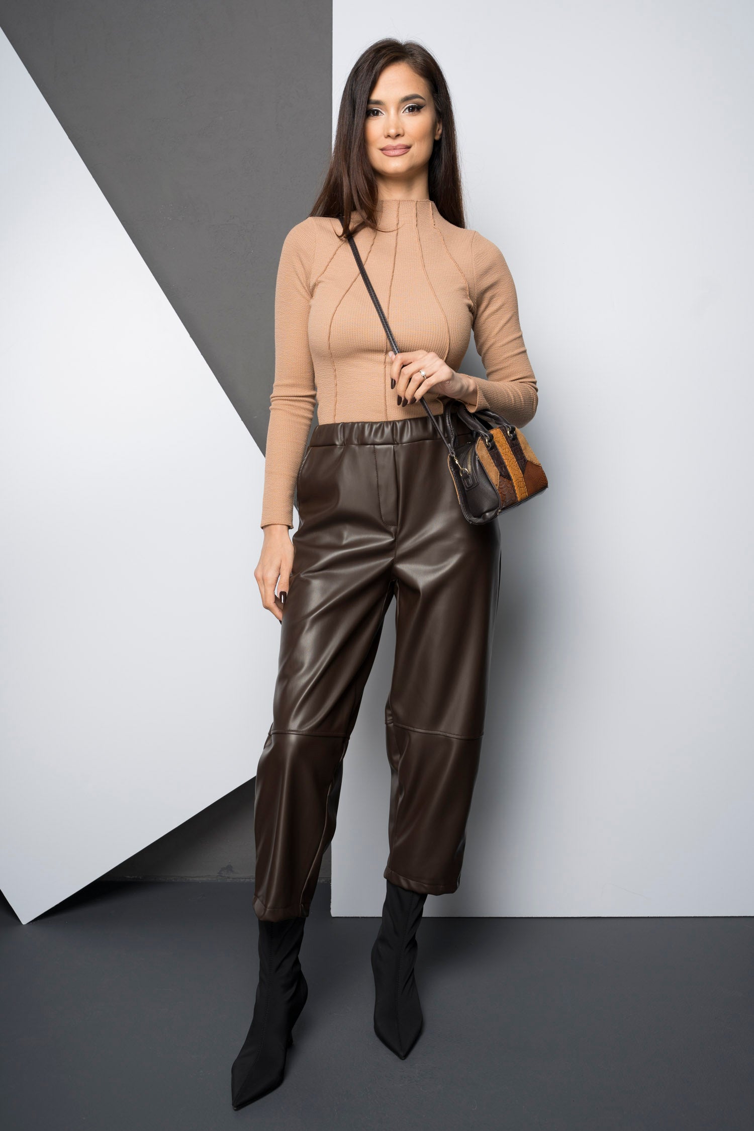 Pantaloni 3/4 din imitatie piele - TOVIA - Maro