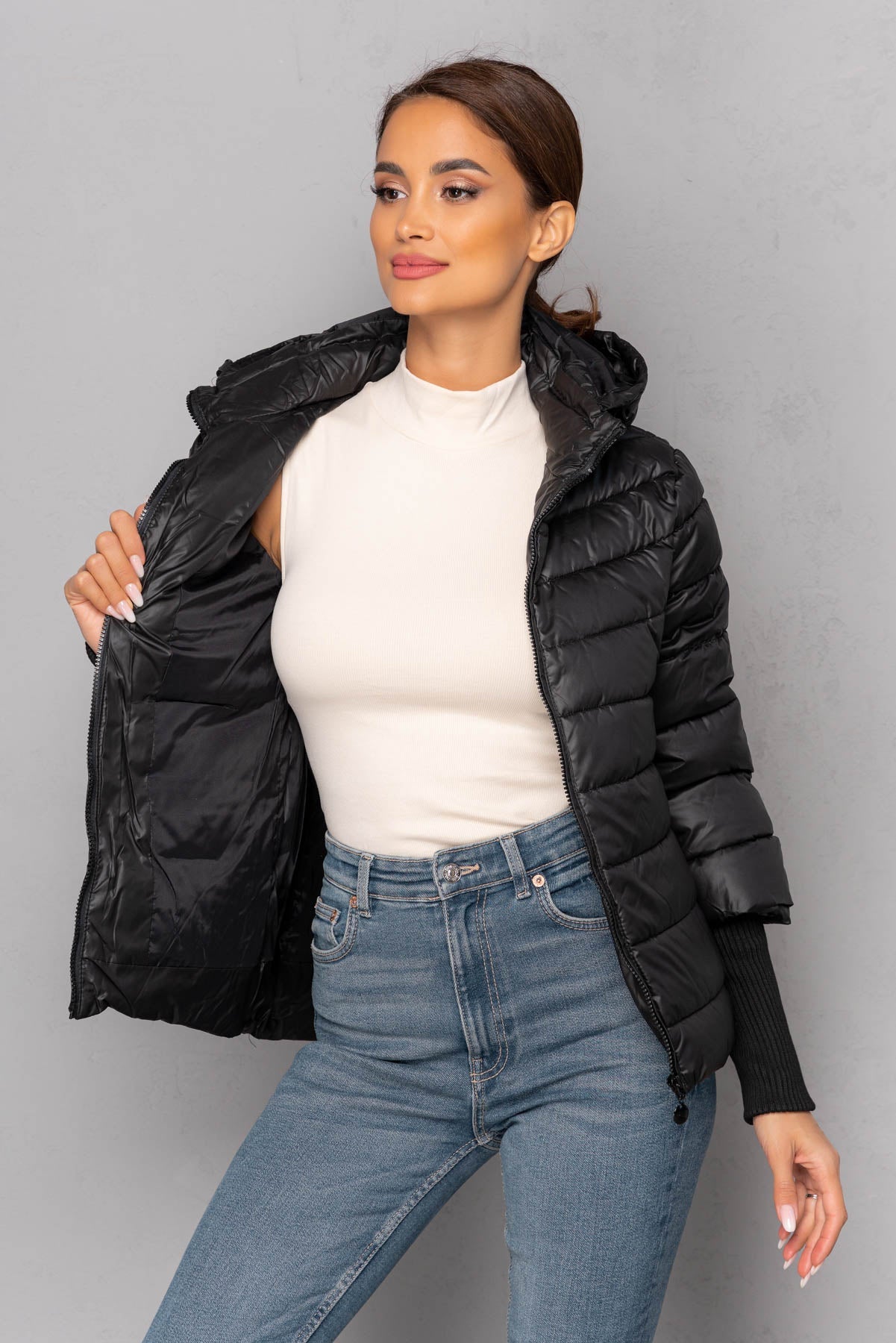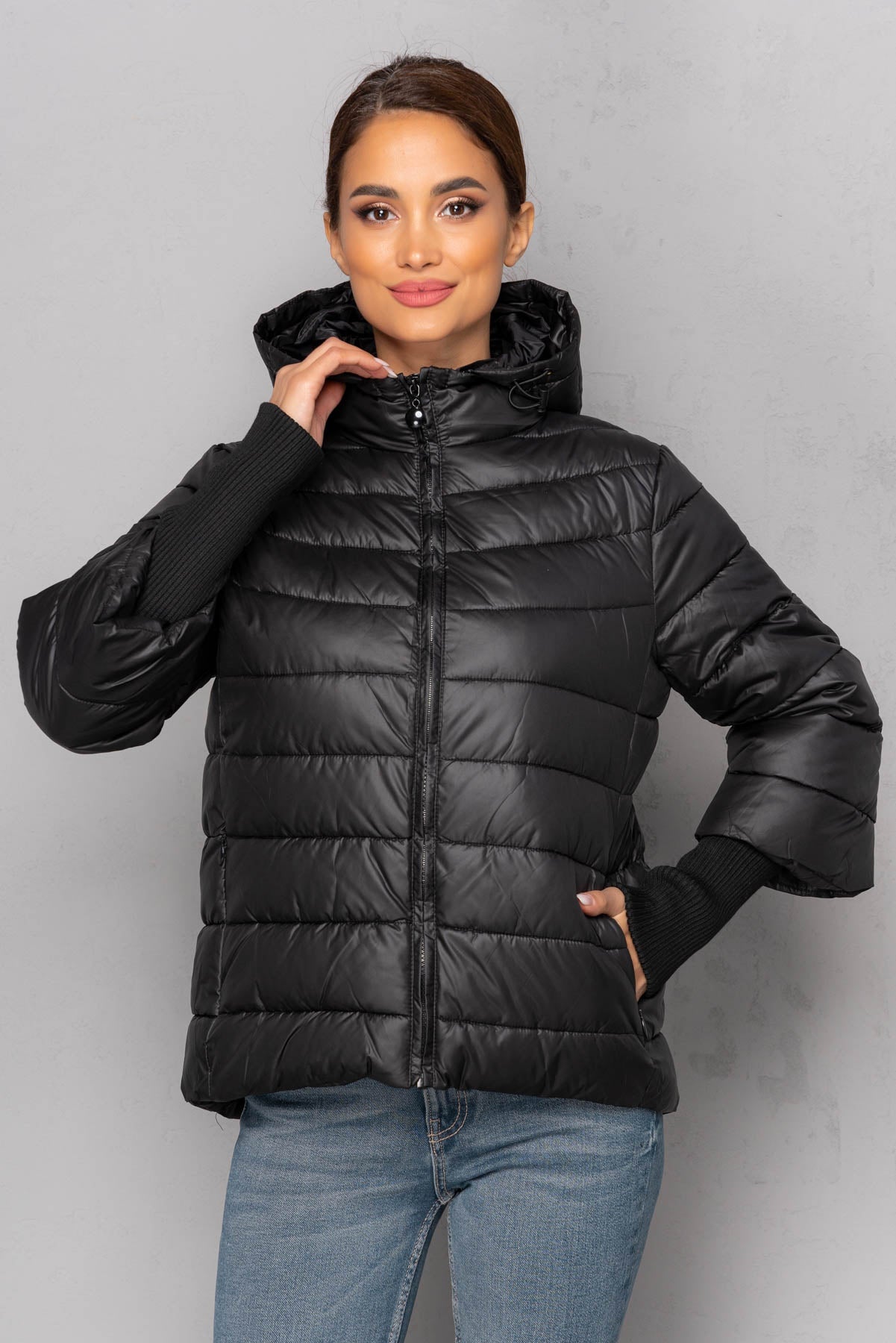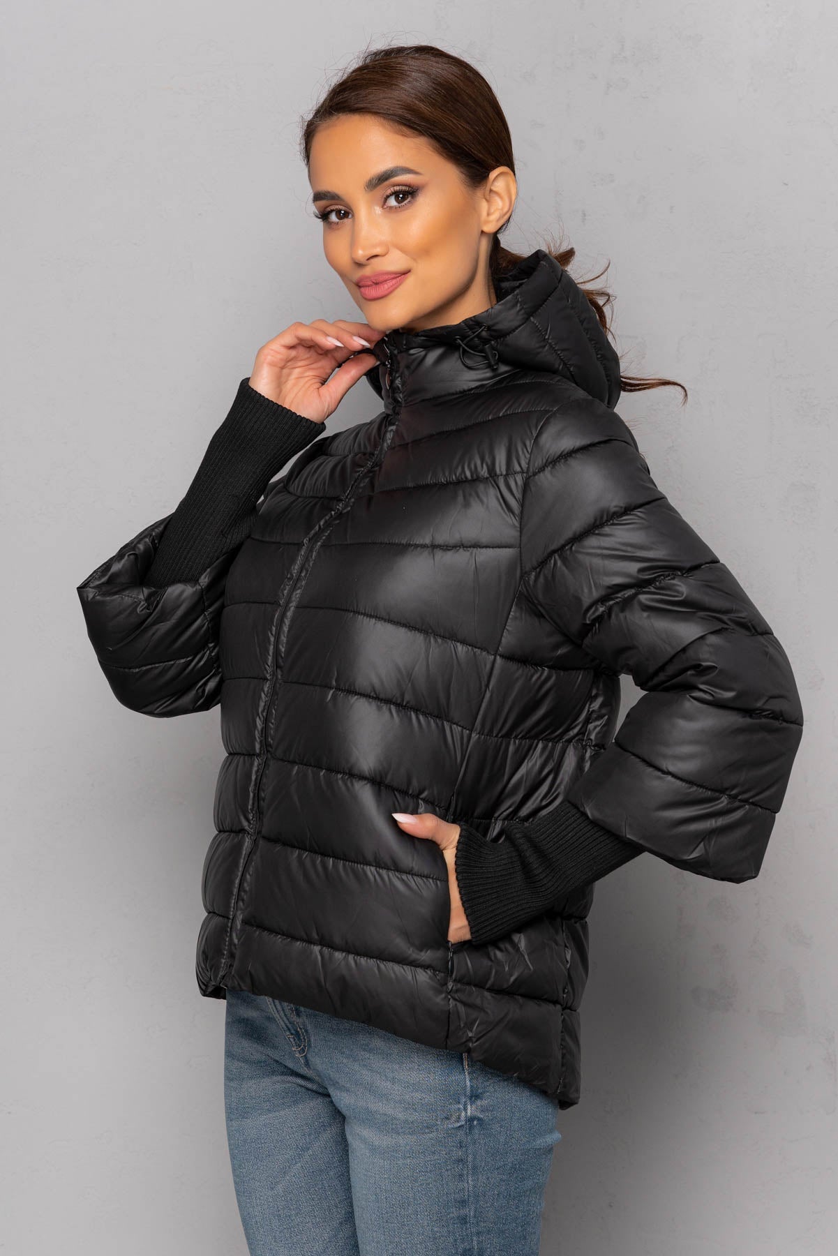 Geaca cu maneci din pulover - MELODY - Neagra - Marimi mari