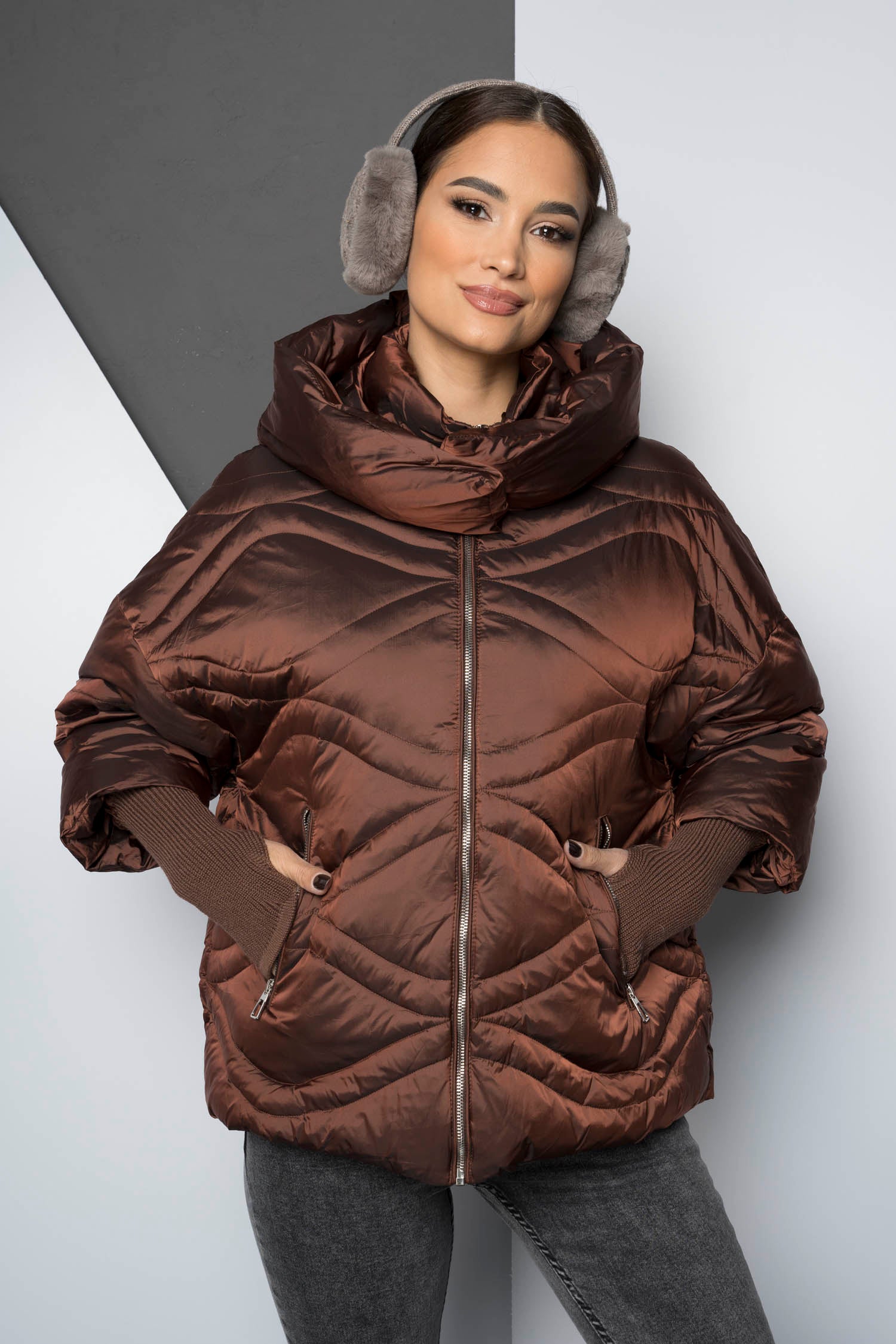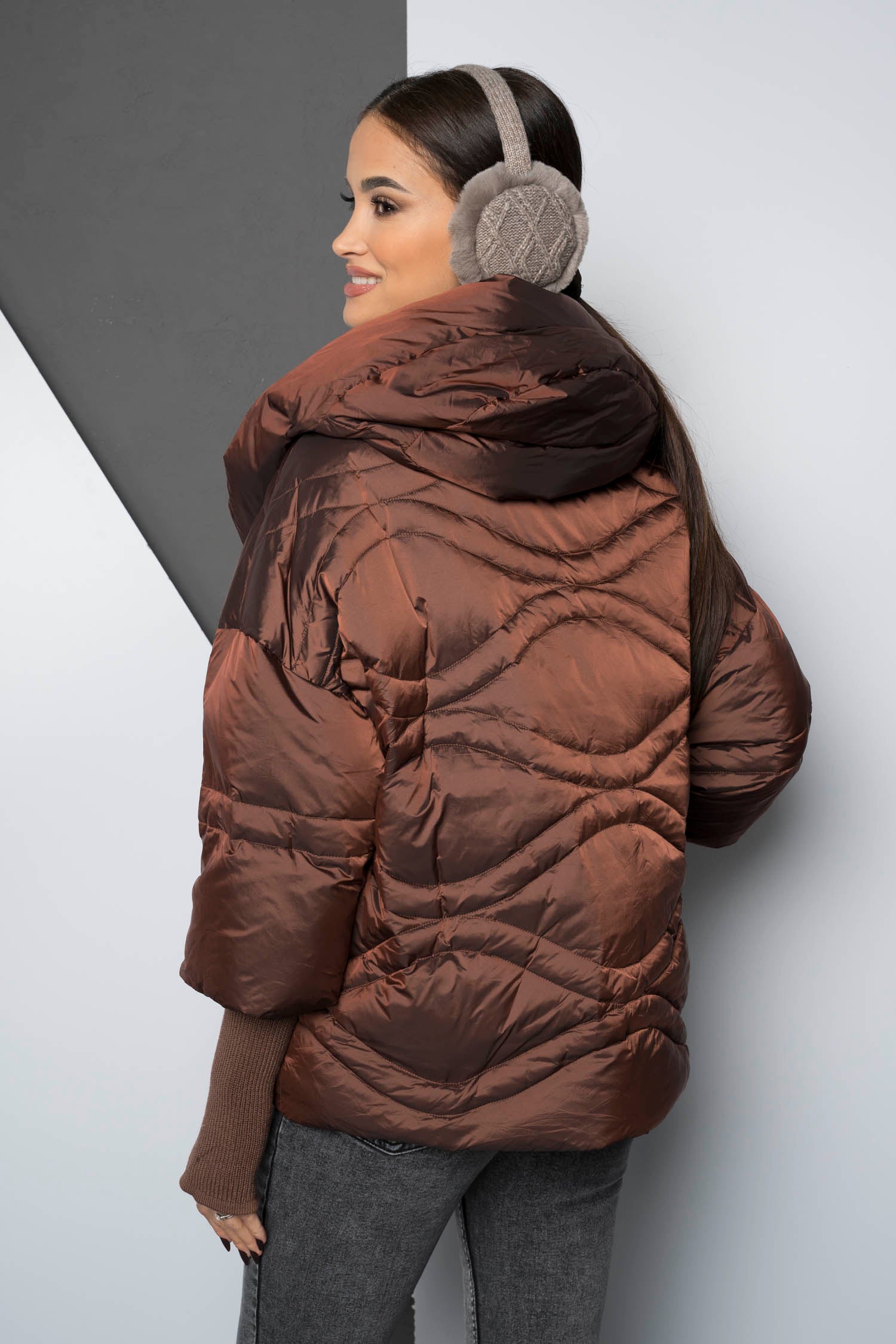 Geaca lunga cu gluga - FLORIA - Caramizie