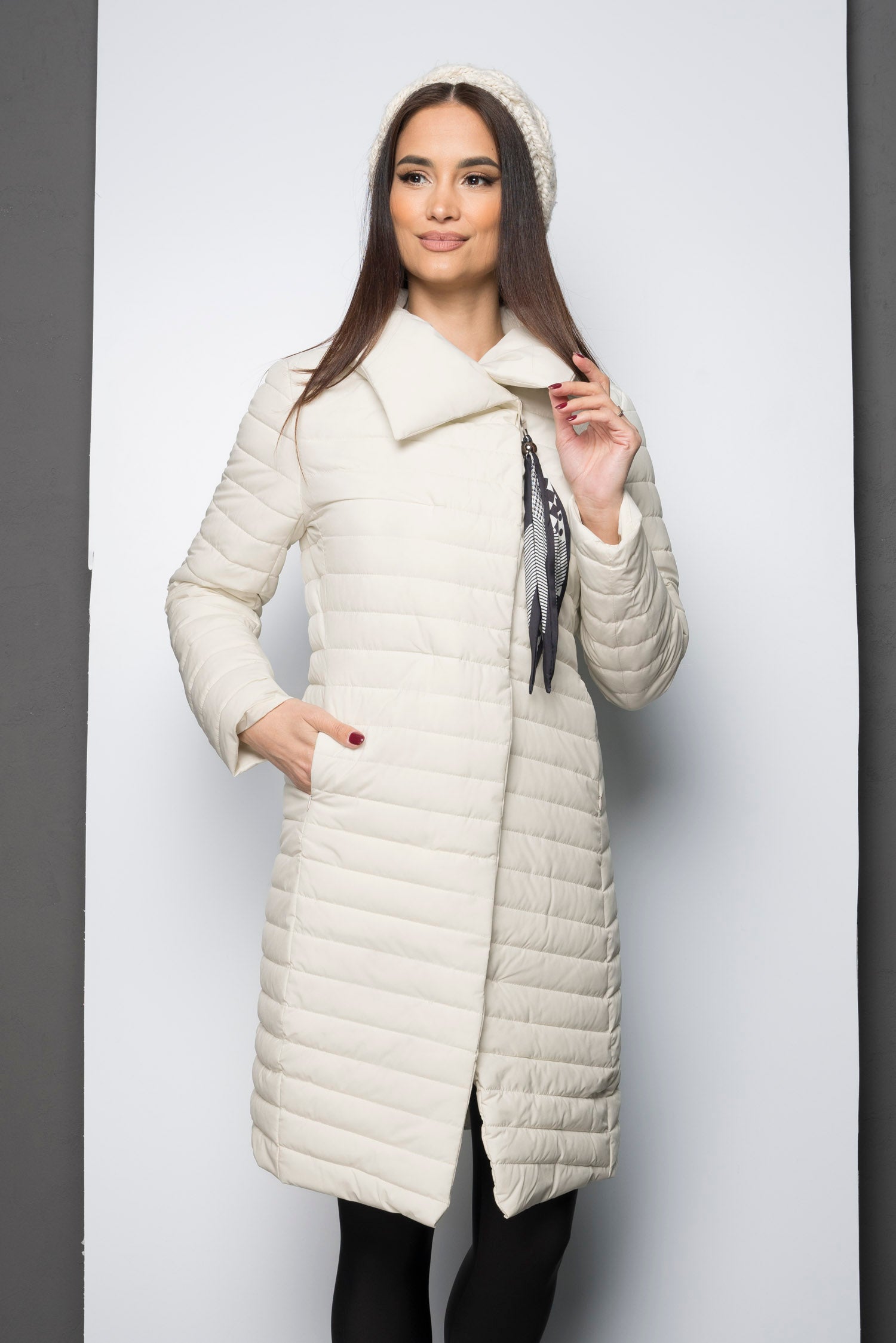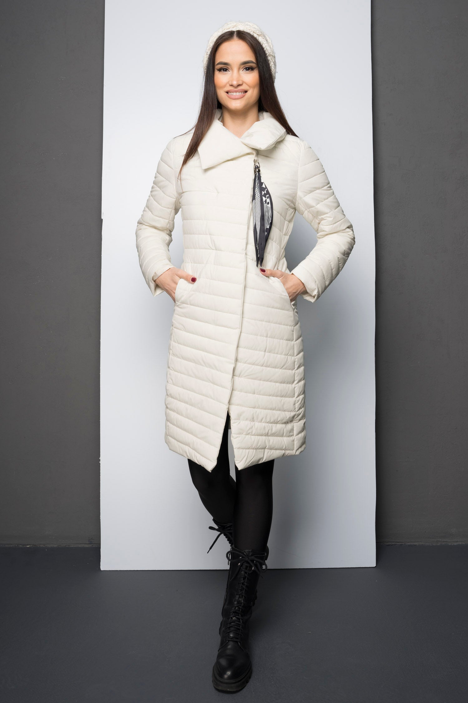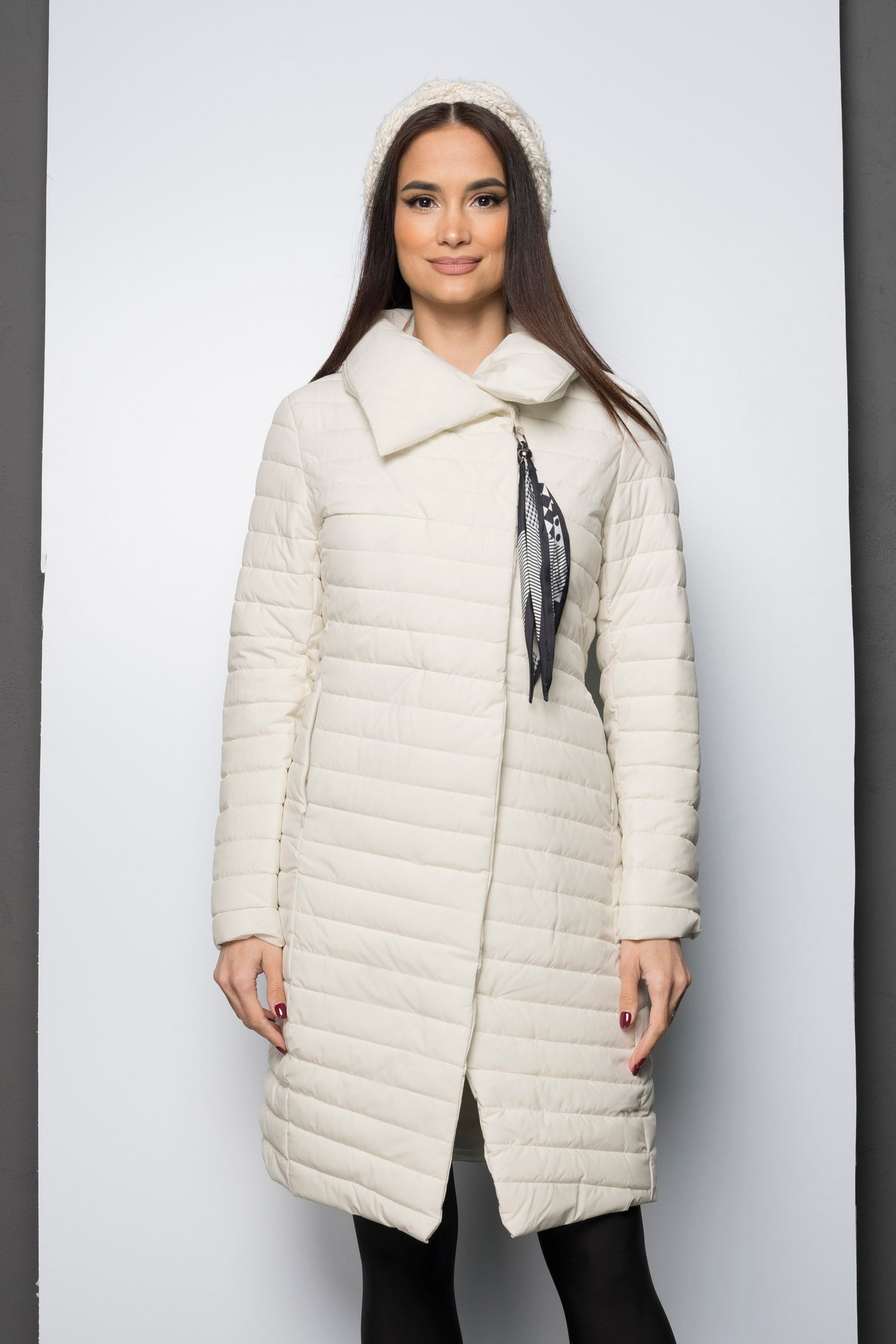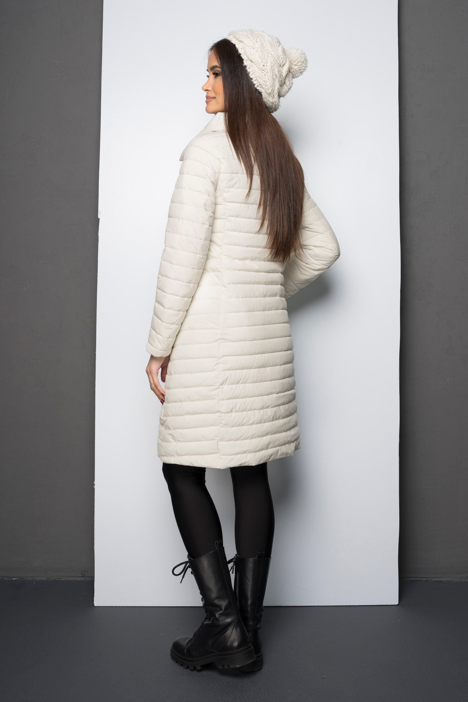 Geaca lunga matlasata cu guler - MOLINETTE - Crem