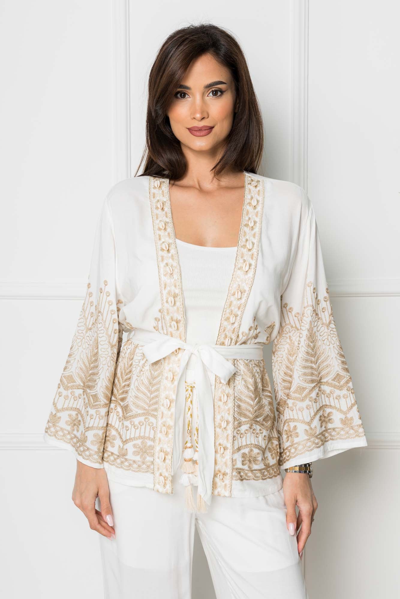 Kimono cu broderie - LAURENCE - Alb