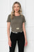 • Eticheta din imitatie piele cusuta la baza tricoului