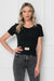 • Eticheta din imitatie piele cusuta la baza tricoului