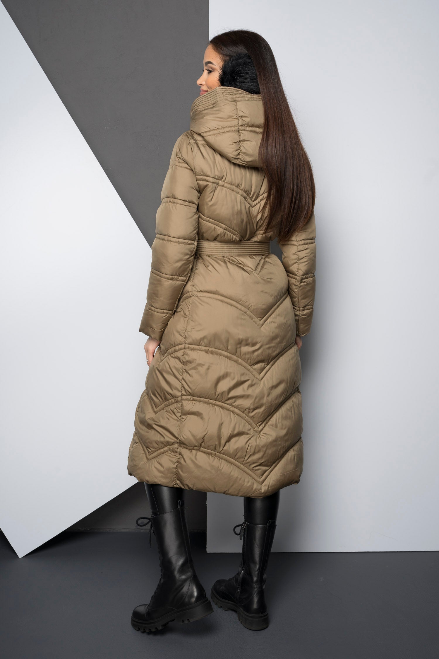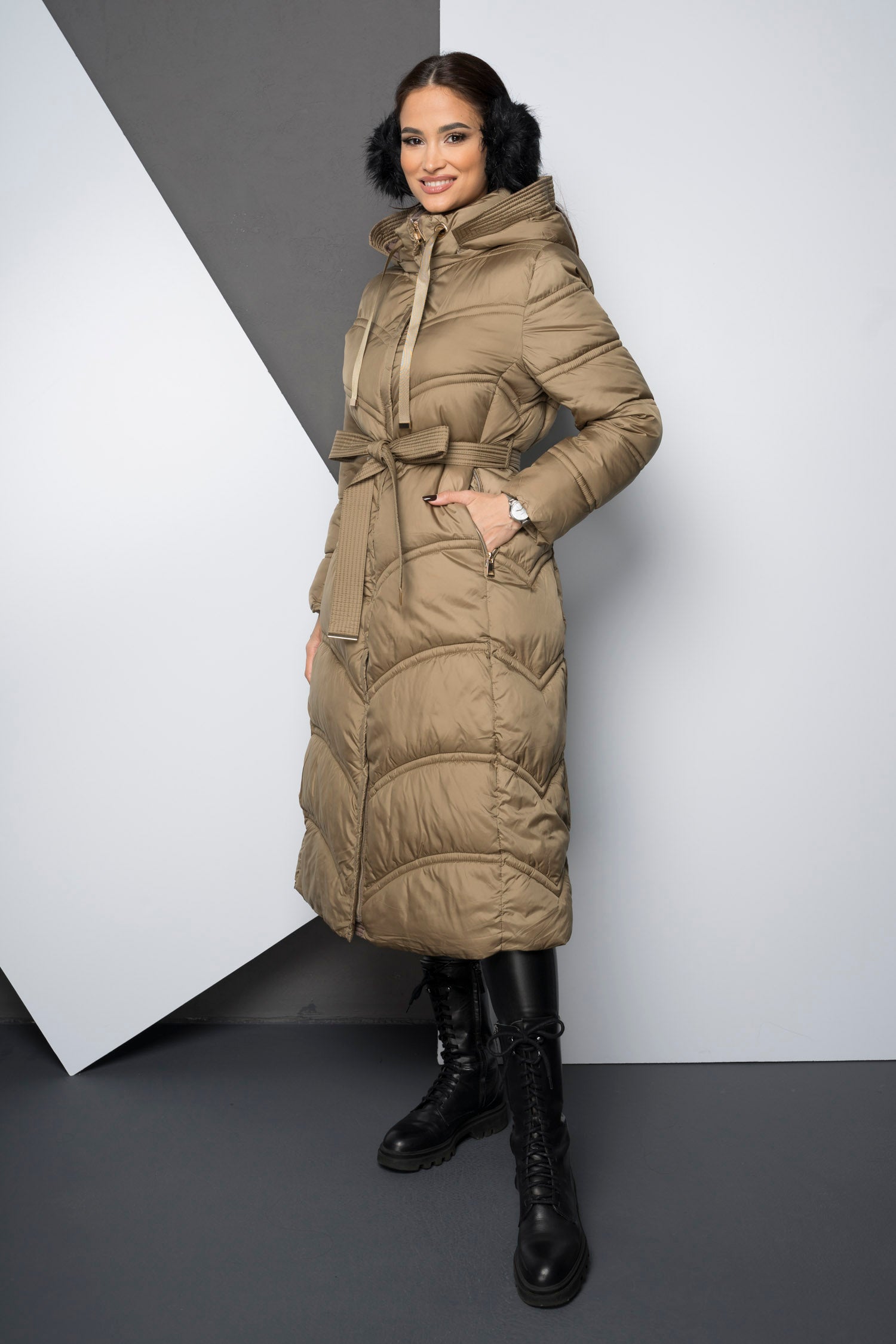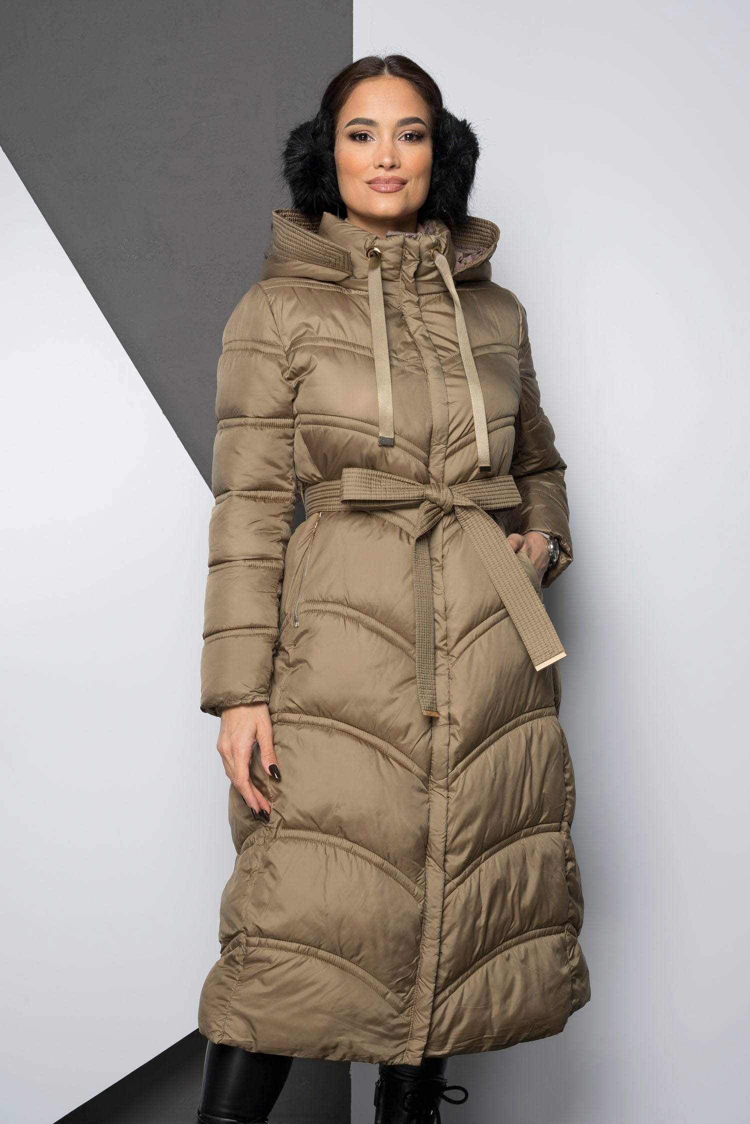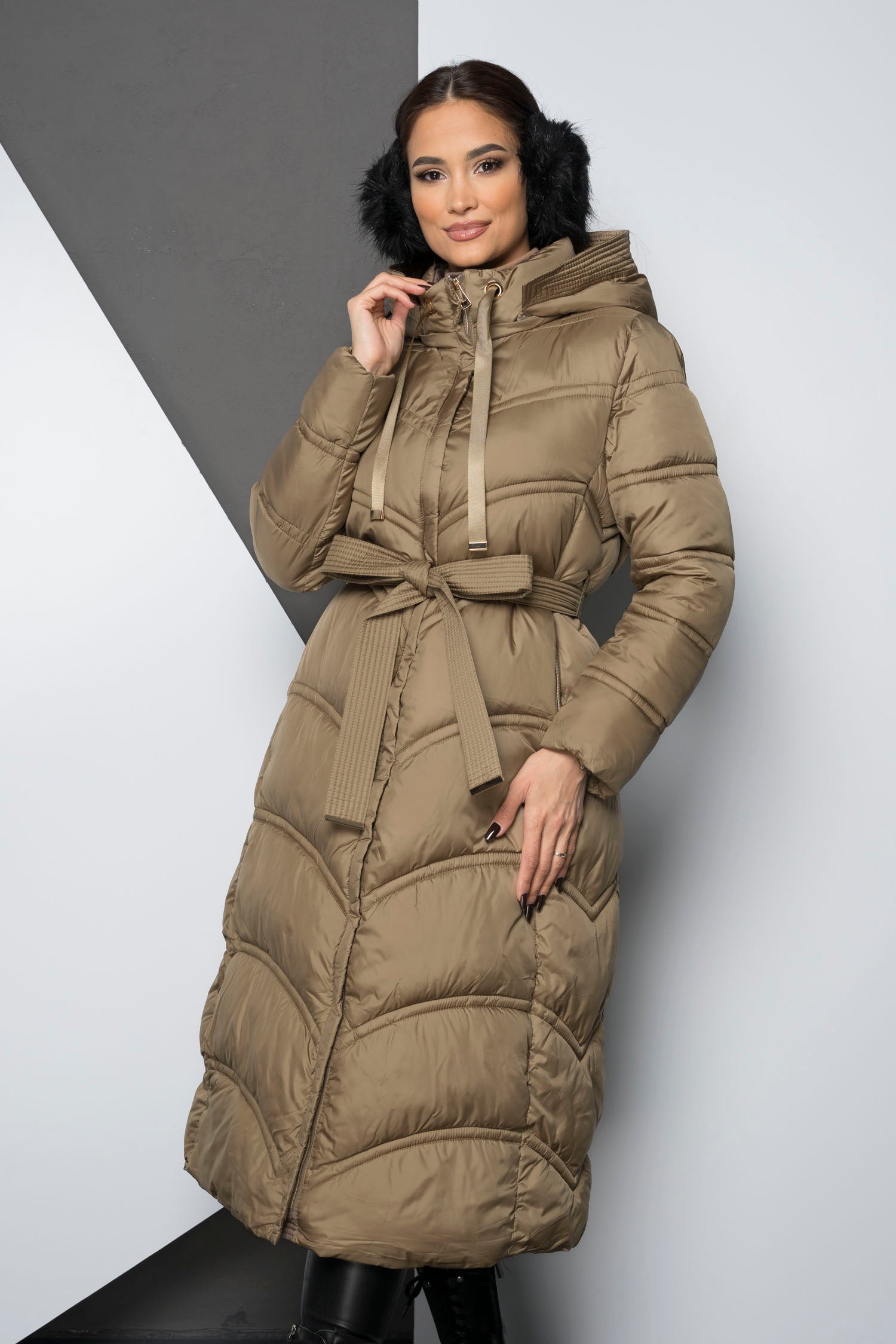 Geaca lunga cu cordon - ARISTA - Caramizie