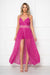 Rochie din dantela cu pantaloni - LIV - Fucsia
