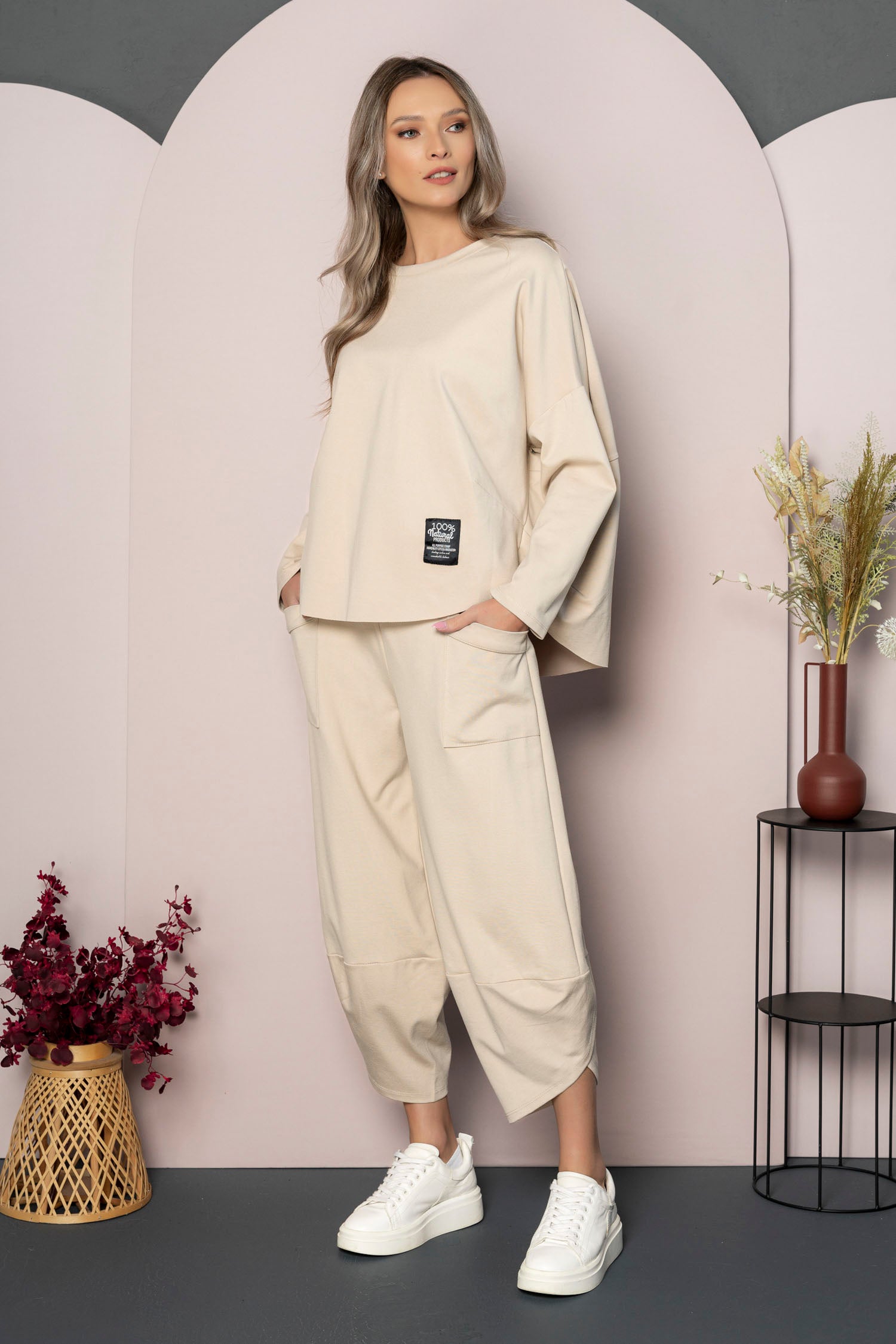 • Pantaloni stil salvari cu buzunare mari