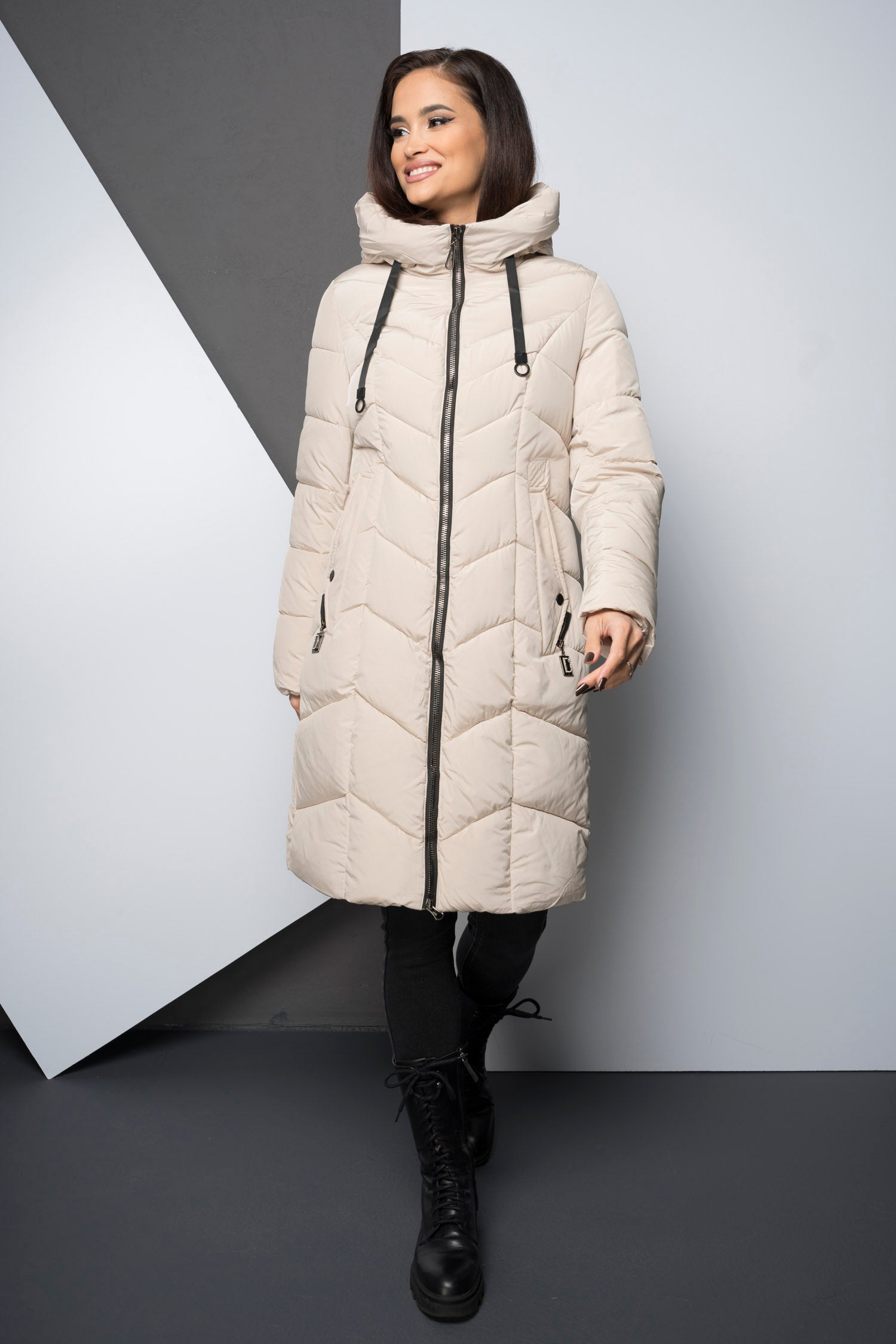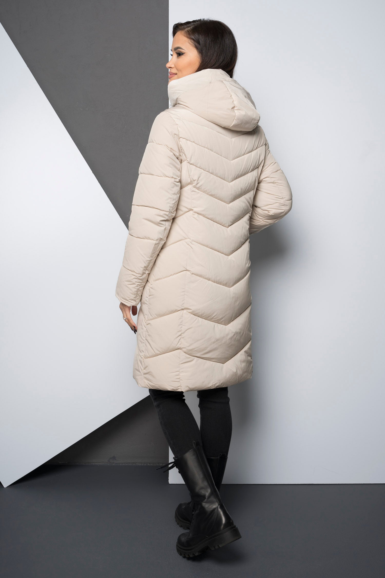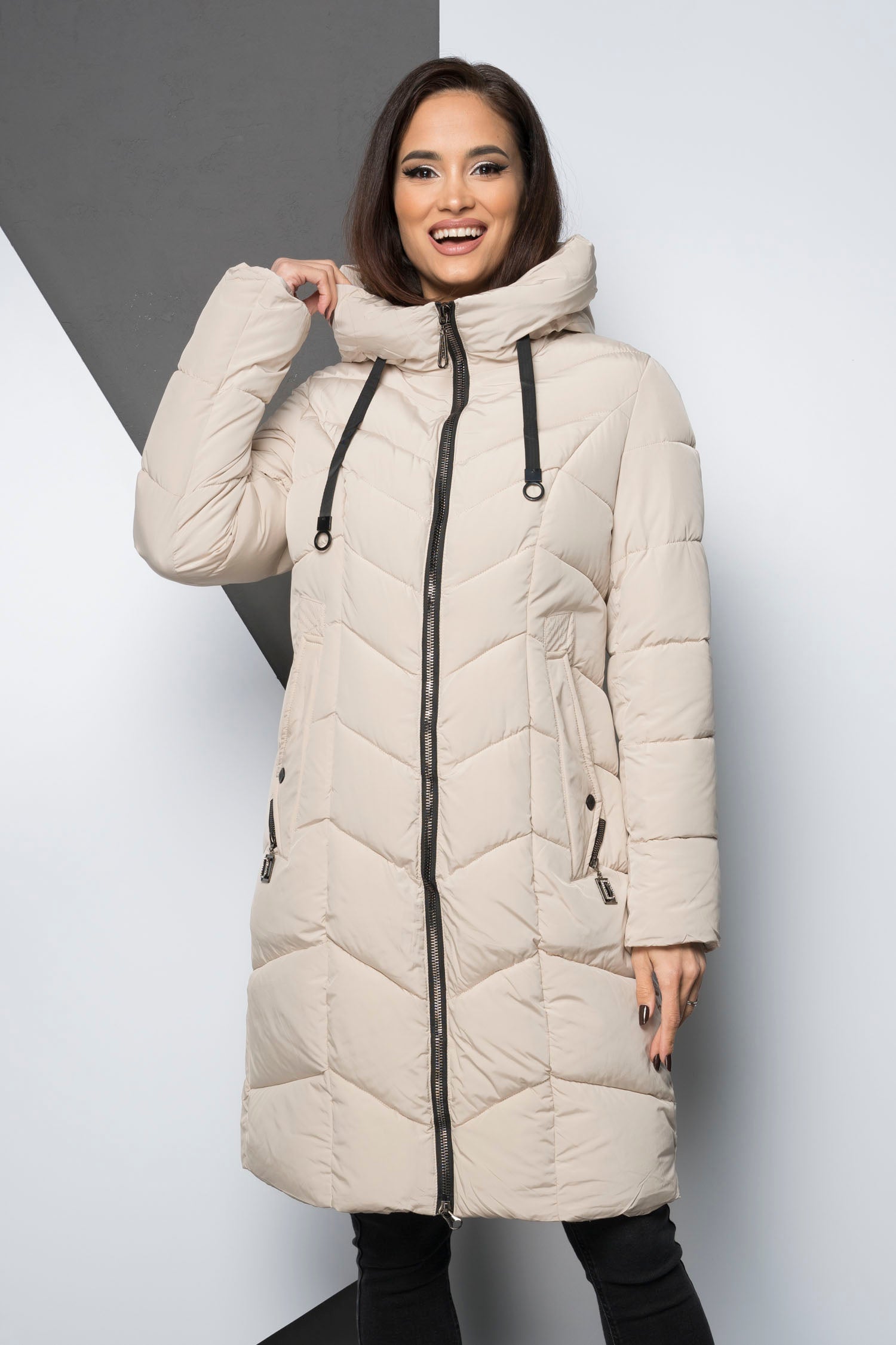 Geaca lunga groasa - MERIDIA - Crem