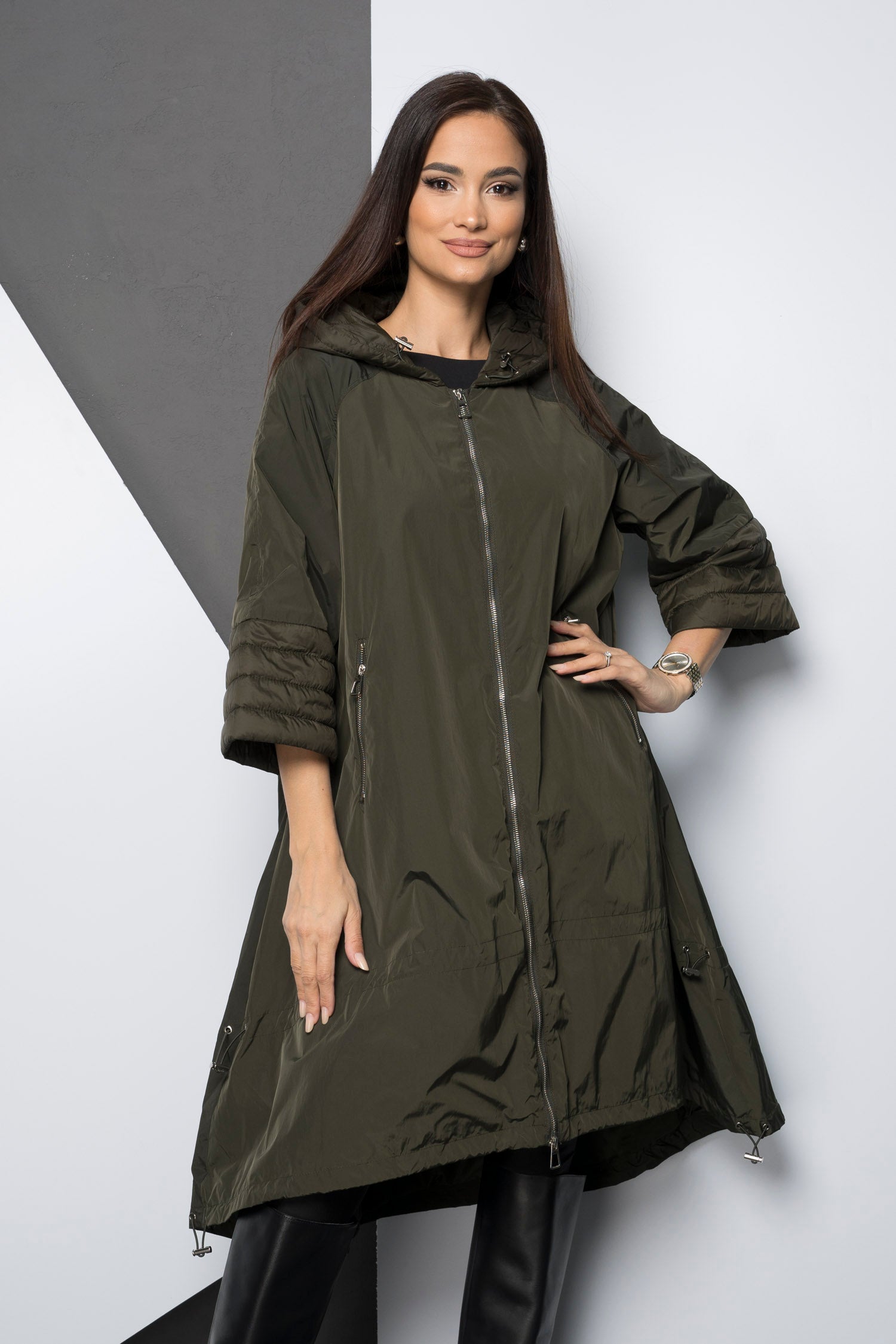 Geaca lunga OVERSIZE din fas - EFFIE - Kaki