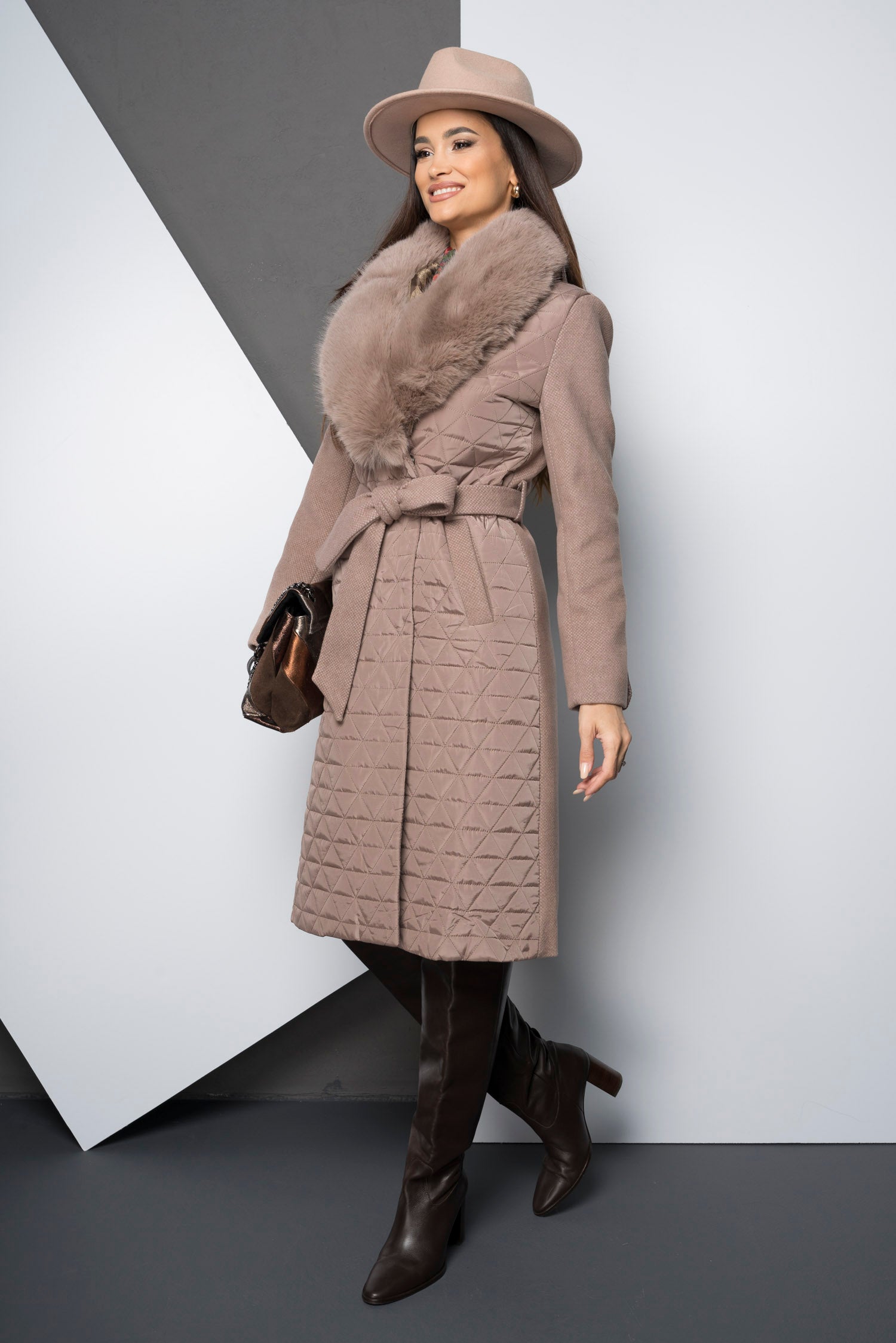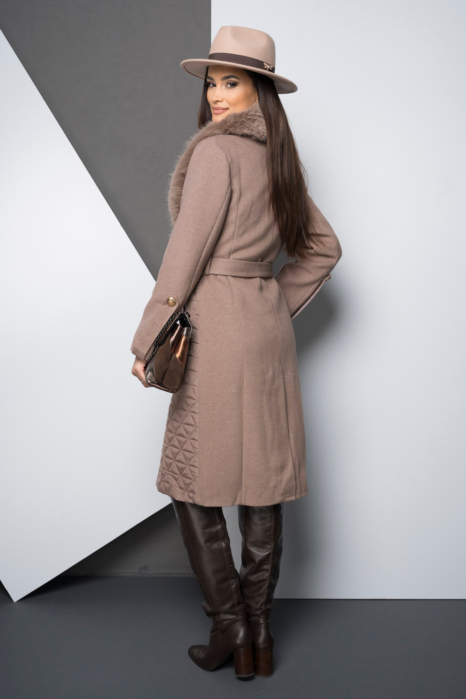 Palton lung din mix de materiale