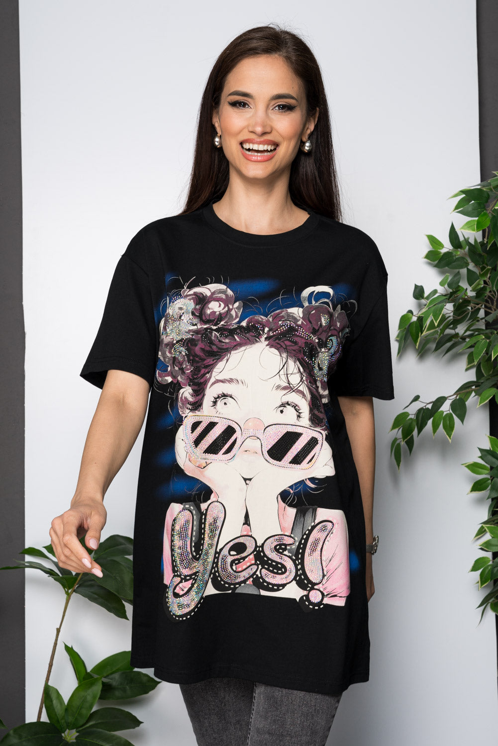 Tricou lung oversize - YES - Negru